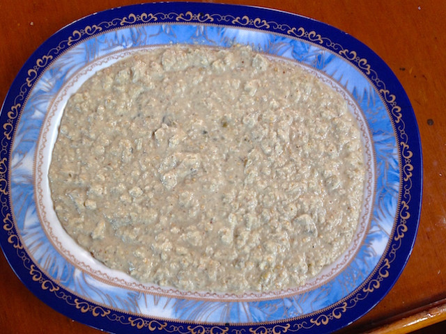 Immer wieder gibt es auf den Booten leckeres Essen und zu diesem Essen stehen auch immer verschiedene Dips auf den Tischen.