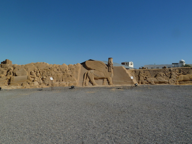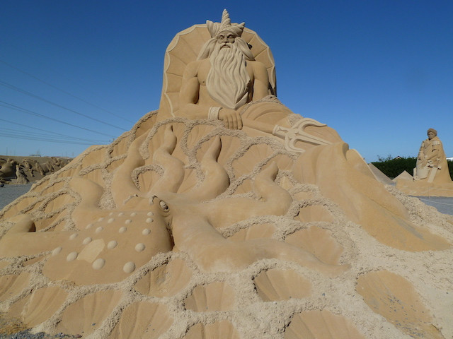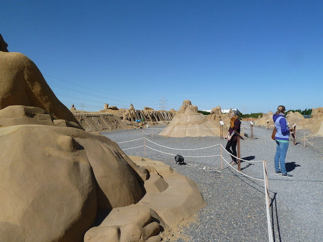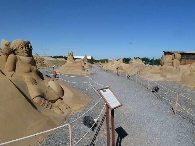 Die Skulpturen wurden aus verschieden farbigem Sand erbaut (heller und dunkler) und es wurden insgesamt 11.000 Kubikmeter Sand bis zum heutigen Tag verbaut. Für die Skulpturen wurde kein Kleber benutzt, sondern es kommt auf das Mischungsverhältnis von Wasser und Sand an und auf die Art, wie alles zusammen gepresst wird.