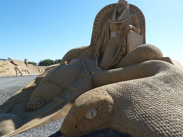 Für eine Sandskulptur brauchten die 30 Künstler aus Spanien und Brasilien bis zu 1,5 Monate zur Fertigstellung. Die ägyptischen Mitarbeiter sind für die Reparaturen zuständig, die natürlich mit der Zeit gemacht werden müssen (Regen, Wind…)