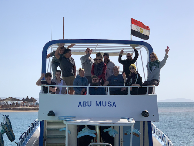 Es ging nochmal für unsere verbliebenen Taucher aufs leere Rote Meer hinaus. Unsere Musa war das einzige Tauchboot weit und breit. Nur eine Schnorcheltour wurde noch am Horizont gesichtet. Unsere James & Mac Tauchlehrer Sascha und Cedric wurden unterstützt von Tauchlehrerin Nina aus dem Blue Water Dive Resort.