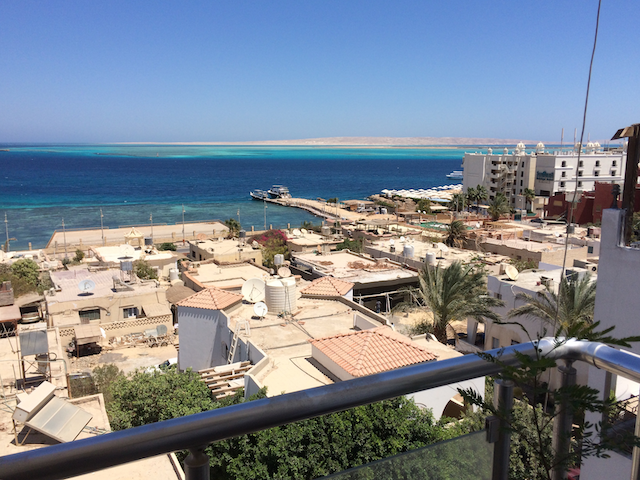 Wir wagen heute mal mit euch einen kurzen Blick über die Dächer von Hurghada. Im Hintergrund ist das wunderschöne Rote Meer zu sehen. – einfach herrlich dieses Farbenspiel, oder?!